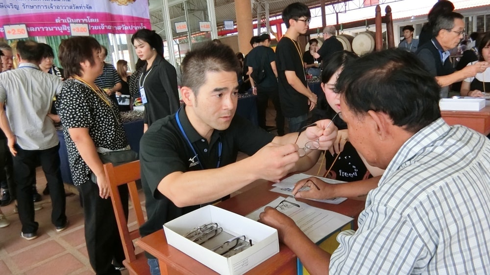 多くの地域住民の方に、皆様から下取りでお預かりしたフレームに部品交換などのお手入れをした後、視力に合わせて新しいレンズを入れたメガネを、無償でお渡しいたしました。もちろん、かけ具合もしっかりと調整しました。